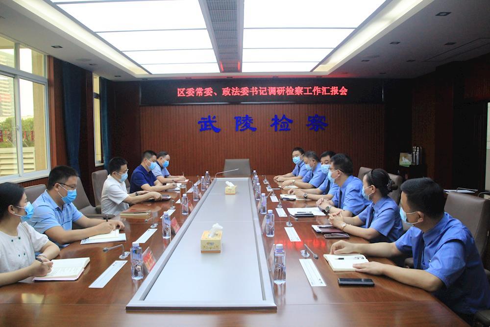 8月10日,武陵区委常委、政法委书记邓慈陵一行来武陵区人民检察院调研指导检察工作,区委政法委常务副书记龚群辉、副书记钟昕、副书记乔玉平、区纪委监委派驻区委政法委纪检监察组组长宋君出席会议,区检察院全体领导班子成员参加会议。